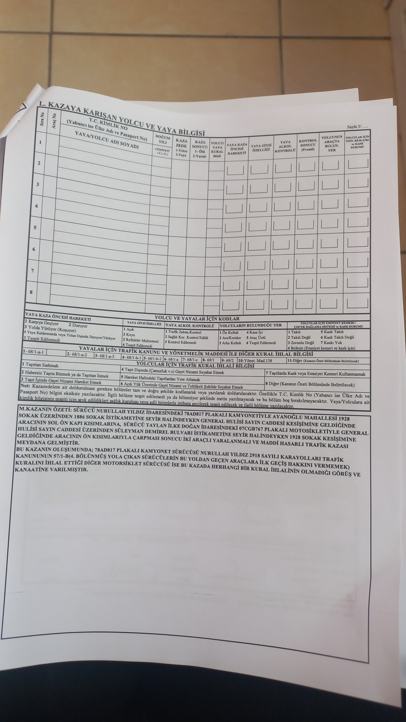 Kaza Açıklaması